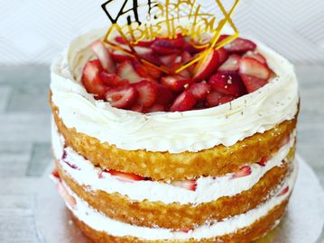 An old-fashioned, tender shortcake with two layers of strawberries topped with whipped cream.